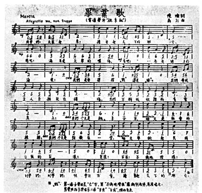 1937年,全面抗戰(zhàn)爆發(fā)后,《畢業(yè)歌》突破租界審查桎梏,從校園走向全社會(huì)。1938年,權(quán)威歌集《叱咤風(fēng)云集》將其列為“大眾戰(zhàn)歌”。次年在桂林舉行的抗戰(zhàn)義賣活動(dòng)中,人們將歌詞稍作修改,疾呼“同胞們快拿出力量”。正如《叱咤風(fēng)云集》編纂者所言,這些音符早已化作“刺破黑暗的投槍”,在血色歲月里永續(xù)激蕩。