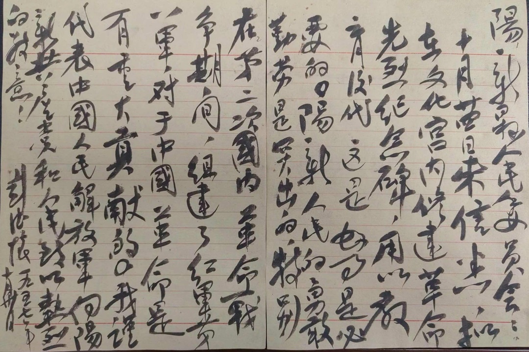 圖為1957年,時任國防部長彭德懷給陽新縣人民委員會回信