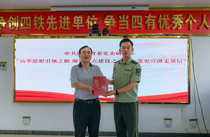 在中國人民解放軍建軍98周年之際,7月29日,省委黨史研究室黨史宣講走基層活動走進武警湖北總隊武漢支隊某中隊,大力弘揚大別山精神、抗洪精神和抗疫精神,引導基層官兵汲取強軍興軍的智慧和力量。