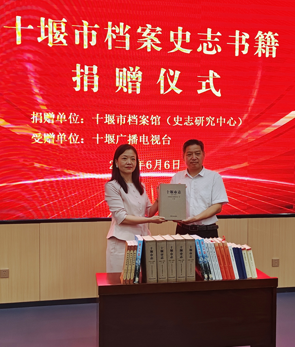 一卷志書藏古今,百冊典籍傳文脈。6月6日,在第18個“6·9”國際檔案日來臨之際,十堰市檔案館(史志研究中心)走進市廣播電視臺,開展“檔案史志文化進廣電”圖書捐贈活動,以珍貴文獻為媒構筑起歷史與現代傳播的紐帶。此次捐贈的108冊書籍涵蓋地方黨史、志書年鑒、地域文化等專題,系統呈現了十堰的歷史沿革、社會變遷和人文底蘊,既是城市發展的立體檔案,更是市民探尋鄉愁、汲取智慧的文化寶庫。