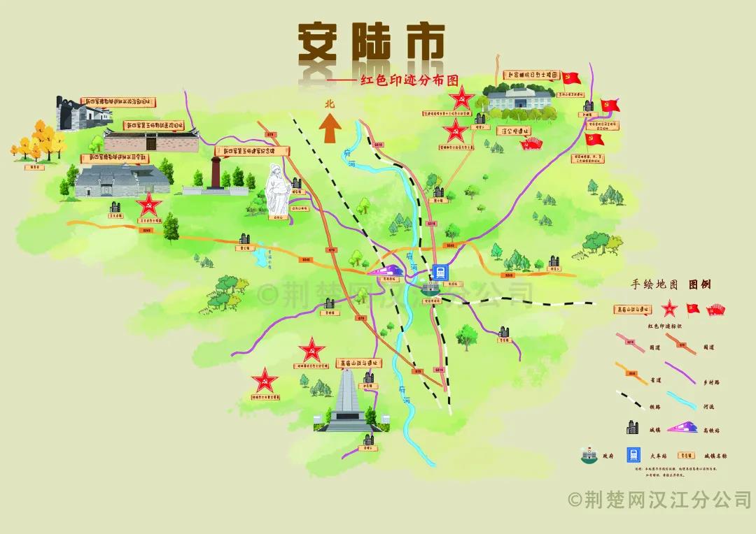 該手繪地圖根據各時期的革命歷史背景,將安陸眾多革命歷史遺址、遺跡、紀念館、故居、陵園等紅色資源融入其中。