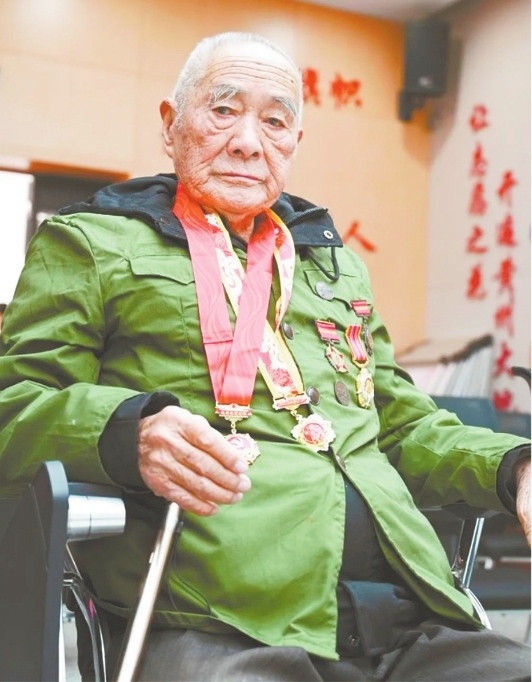 94歲的老黨員陳世禮,先后參加過淮海戰役、渡江戰役、抗美援朝戰爭,在朝鮮戰場上凍掉10根腳趾,在槍林彈雨中九死一生,榮立三等功兩次。