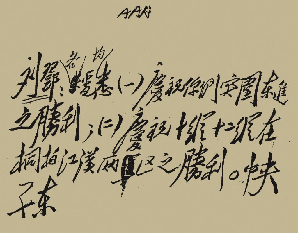 毛澤東電賀劉鄧大軍進入桐柏區之勝利