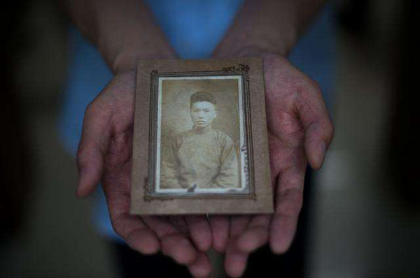 許白昊侄孫許振斌展示家中珍藏的唯一許白昊的照片