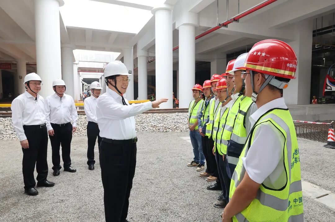 武漢市軌道交通12號線全長59.9公里,是世界第二、亞洲第一長的地鐵環線,其中板橋停車場是承擔地鐵列車停車列檢等功能的重要設施,目前正抓緊建設。王忠林走進項目工地,看望慰問一線建設者,實地察看項目建設進度,檢查安全生產工作。他指出,軌道交通12號線是重要的城市基礎設施和民生工程,對于完善武漢城市交通網絡、滿足群眾高品質出行需求具有重要意義。各建設單位要堅持以人民為中心的發展思想,倒排工期、掛圖作戰,加快項目建設進度,確保早建成、早投用、早受益。要保證工程質量,嚴把原材料、施工工藝等關口,打造經得起歷史、實踐和人民檢驗的精品工程。要強化安全管理,在精細、精準上下功夫,落實好每一項責任、抓好每一個細節、堵塞每一個漏洞,確保項目安全平穩推進。要加強生態保護,嚴格落實降塵降噪、渣土管理等措施,最大限度減少對周邊環境和居民生活的影響。