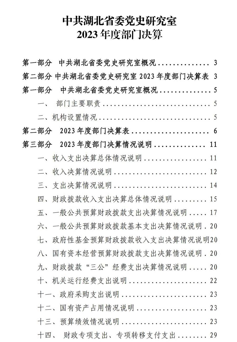 中共湖北省委黨史研究室2023年度部門(mén)決算公開(kāi)說(shuō)明