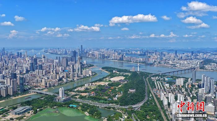 長江及其最大支流漢江在武漢交匯,形成武昌、漢口、漢陽三鎮(zhèn)鼎立的格局。(無人機照片)周星亮攝