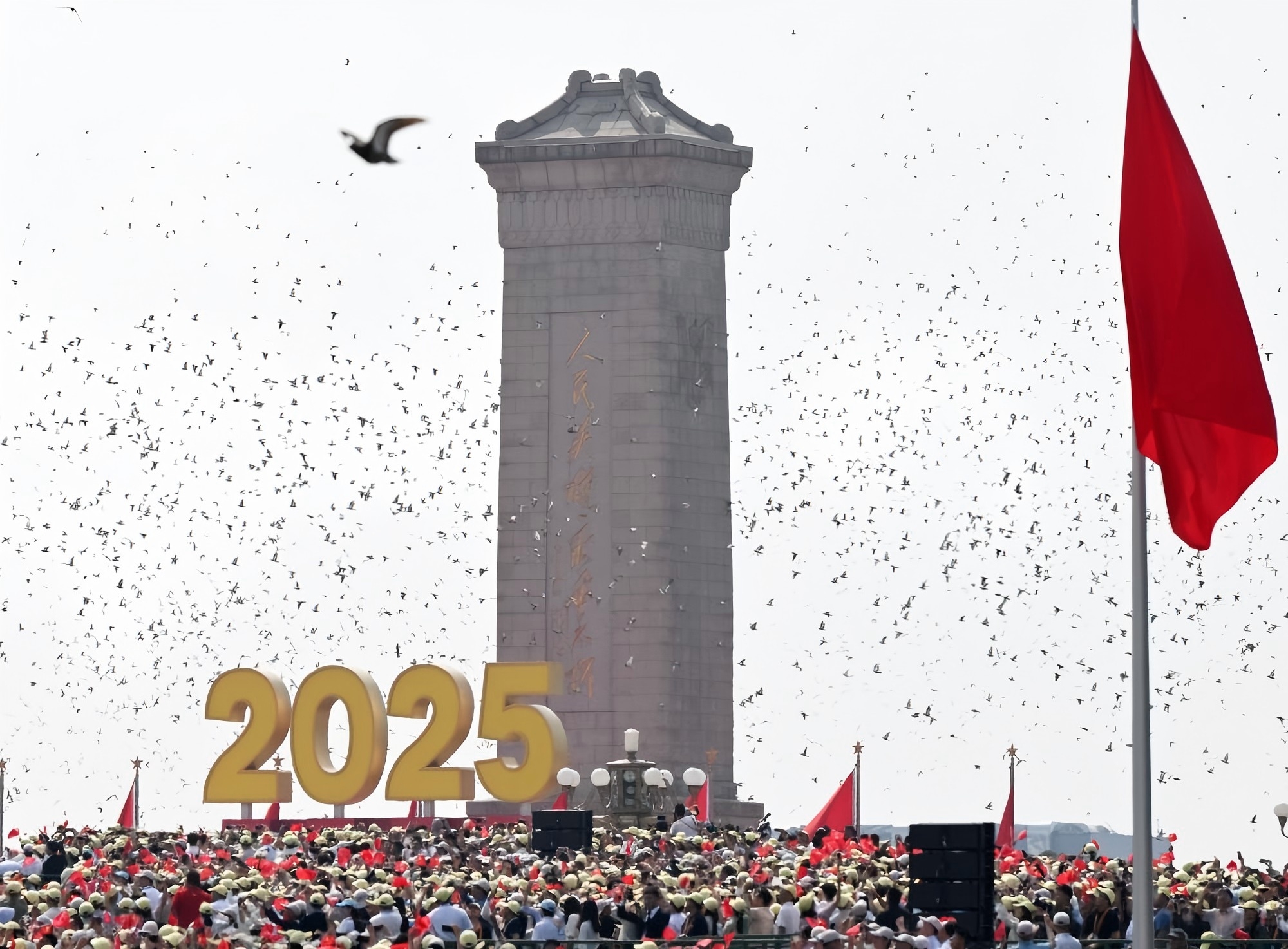 9月3日,現場放飛和平鴿。新華社記者肖藝九攝